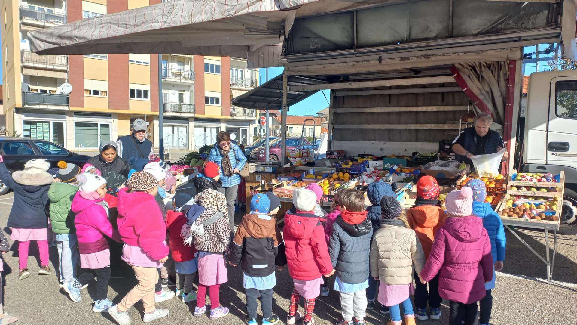 Questa mattina siamo andati al banco del Signor Giuseppe presso il mercato cittadino, che ci ha donato molti frutti autunnali. Dopo averli puliti e tagliati abbiamo fatto un delizioso succo, ricco di